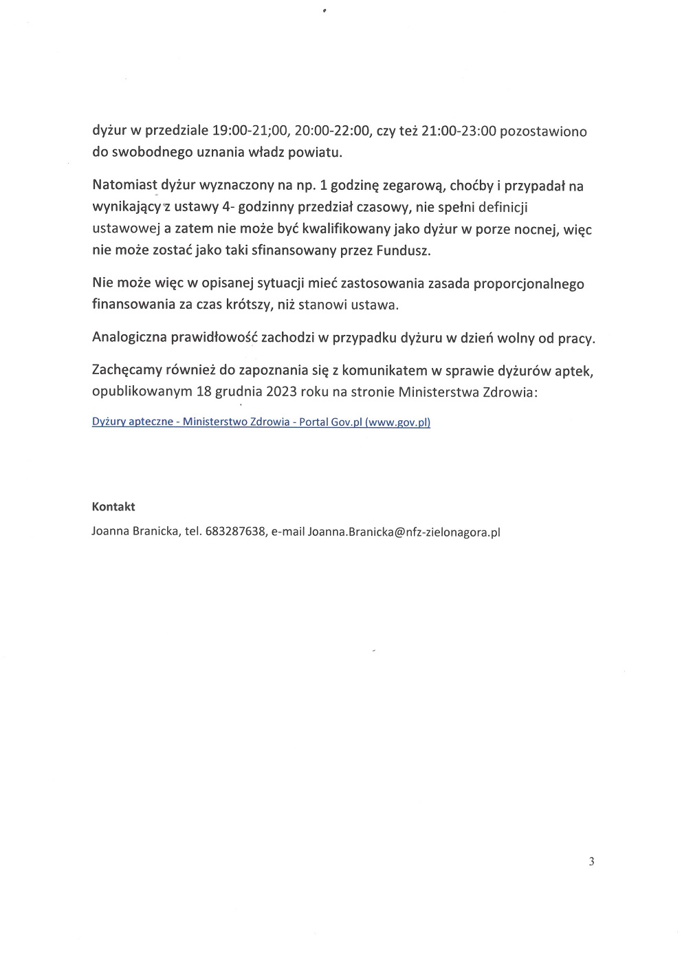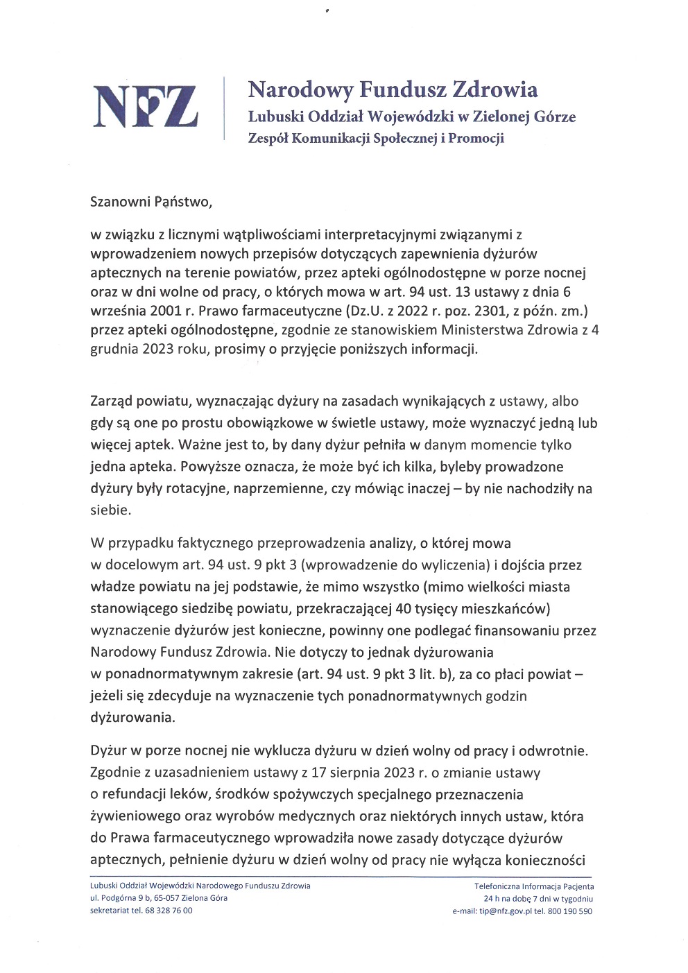 Informacja NFZ w sprawie dyżurów aptekArchiwum