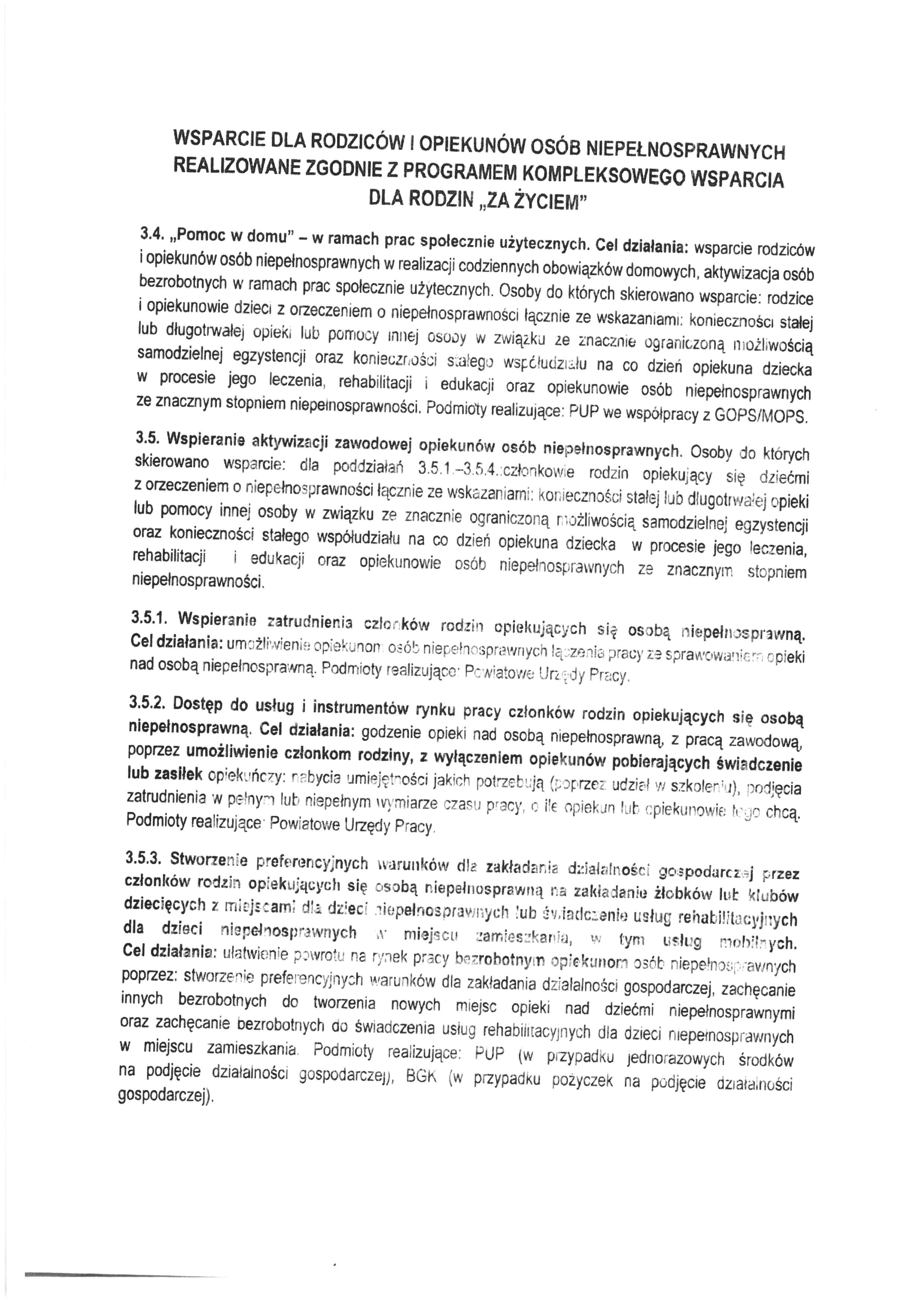 Wsparcie dla rodziców i opiekunów osób niepełnosprawnych realizowane zgodnie z programem dla rodzin "Za Życiem"